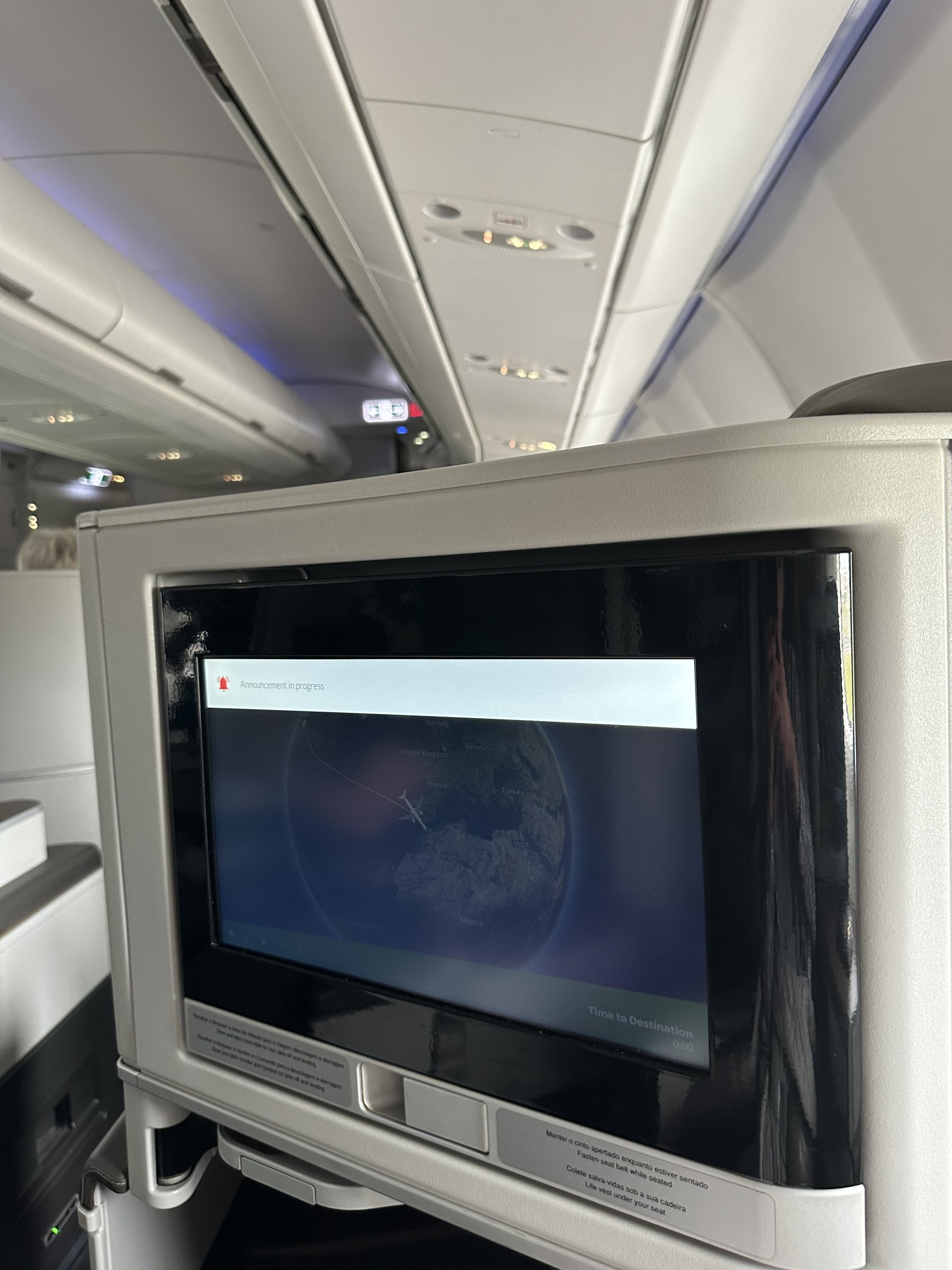 Generally, my only qualms with the seat were the awkward angle of the IFE screen when stowed, as well as the lack of fixed storage space. During takeoff, climb, landing and taxi, the screen must be stored in its fixed resting position, which sat at roughly a 45 degree angle facing toward the aisle. Hence they were not pleasant to use during these periods of the flight. While obviously this encompasses only a fraction of the duration of the flight, I found it a bit frustrating nonetheless. Further, I thought the cabinet and seat-side storage well were acceptable, but could imagine they may be a bit lackluster should I have wanted to keep a laptop/iPad or more personal items out during the flight.