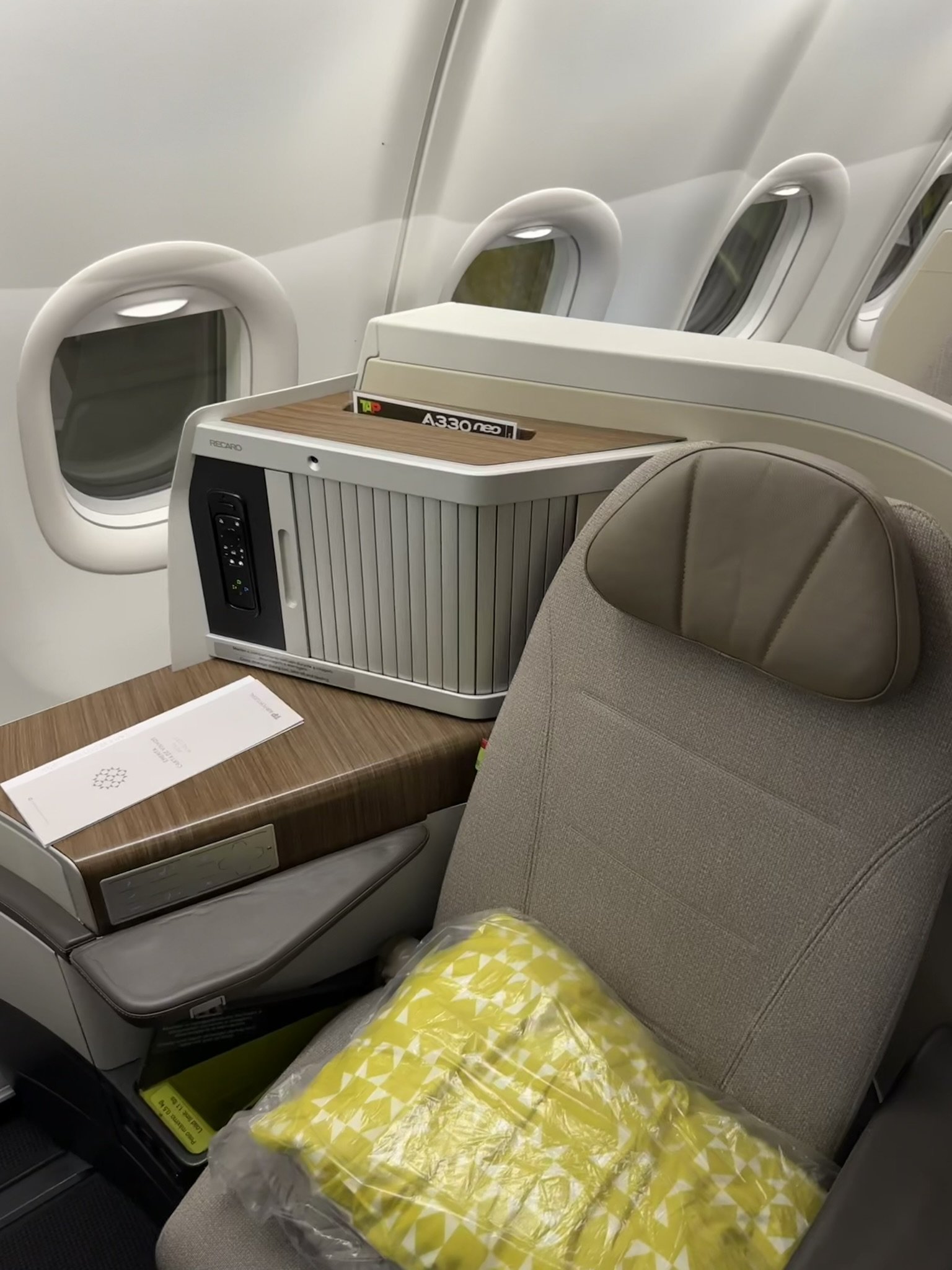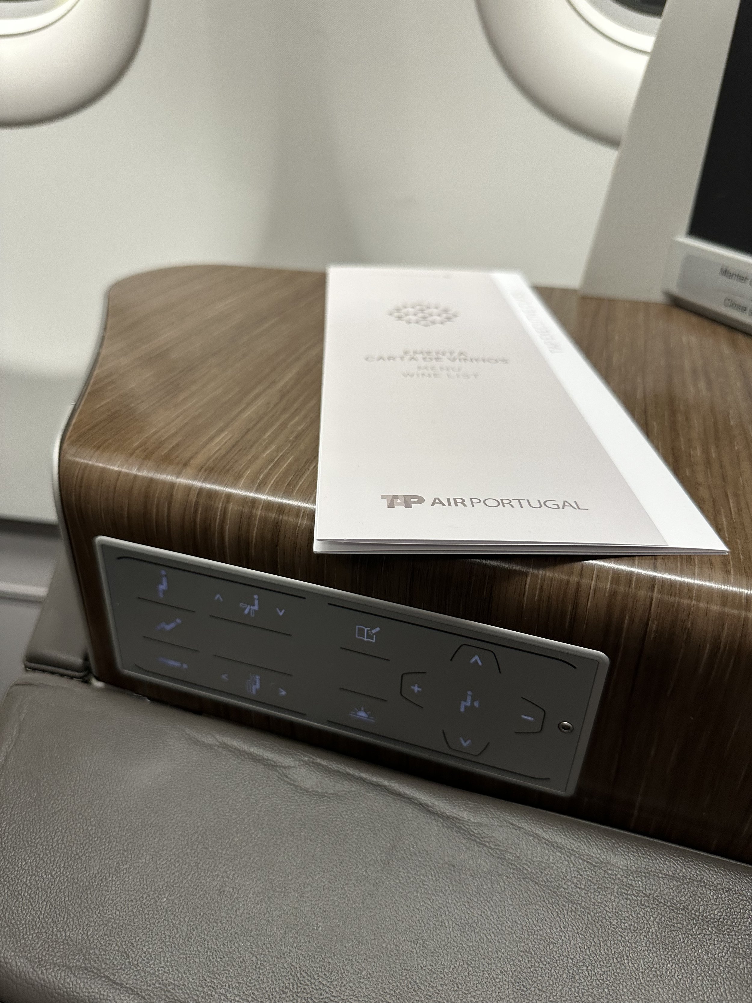 Upon boarding, I was guided to my seat, 6H, a window on the right side of the aircraft. TAP Portugal’s seats all have direct aisle access, laid out in a 1-2-1 configuration. The cabin felt very cozy, with wood seat paneling and TAP’s signature lime green accents. The seat was very spacious, with a rather comfortably sized footwell and plenty of counter space. The seat itself was wide and quite comfortable, with easy-to-use seat controls above the right armrest.