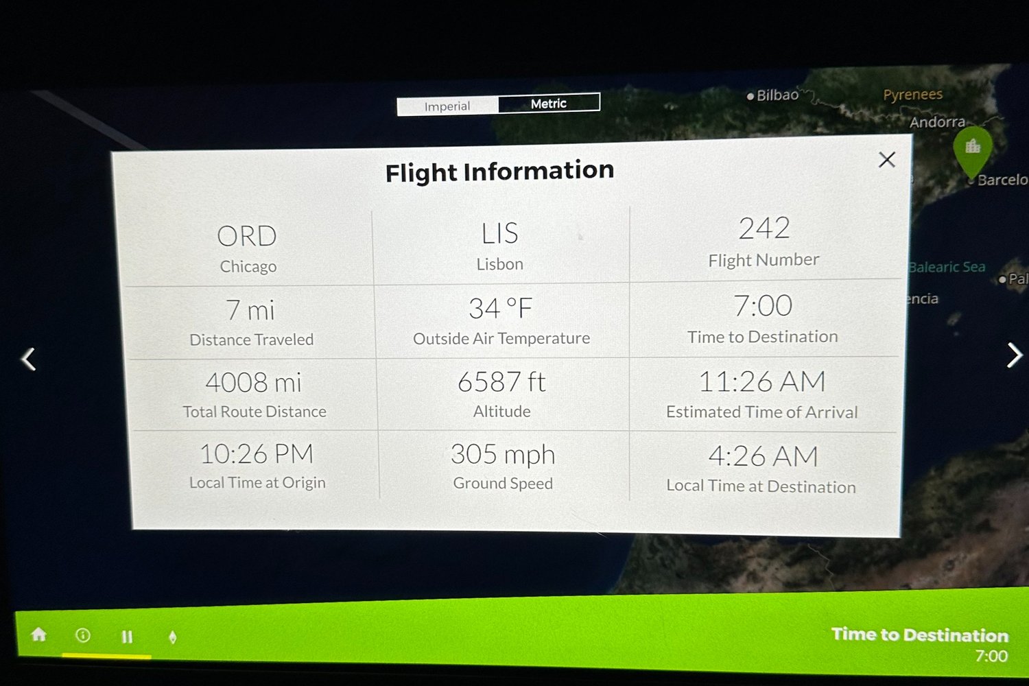 I managed to sleep nearly three hours, and by the time I woke up, we were an hour and a half from Lisbon. I used TAP’s free messaging WiFi service to chat with my friend, who opted to stick in coach. While I don’t have details of the WiFi, I found the prices quite reasonable (significantly cheaper than my return flight in United Polaris), and TAP offered free inflight data connectivity for customers of specified Portuguese telecom carriers.
